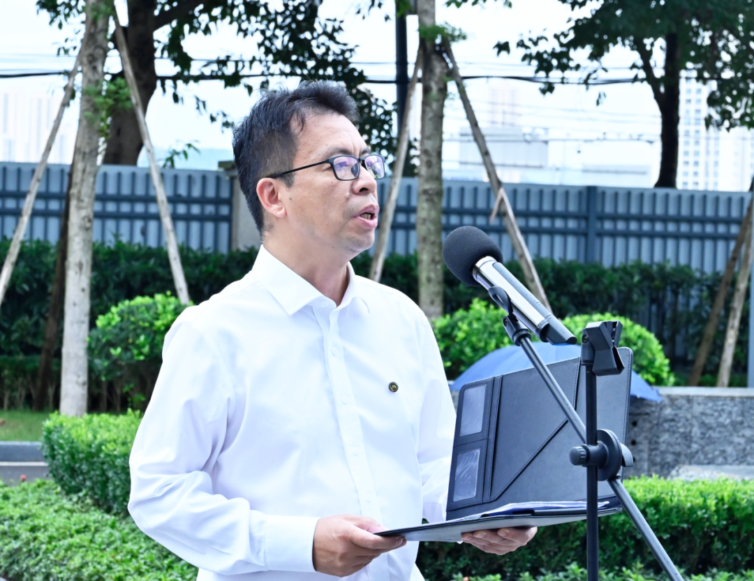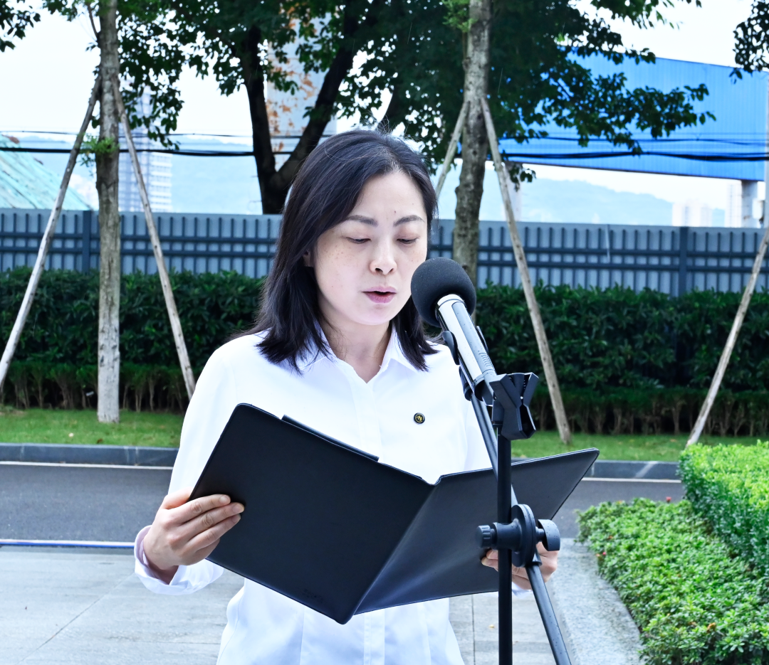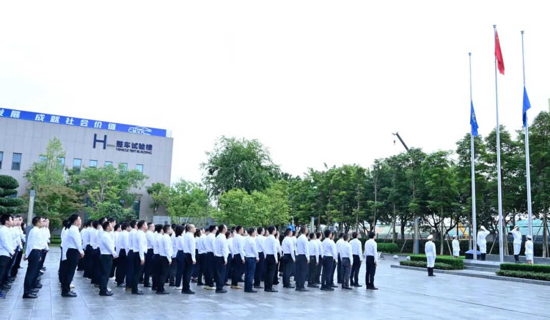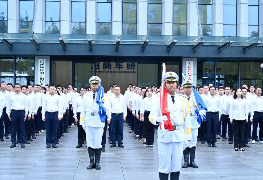 上午9点30分,招商车研在金凤基地综合楼广场举行公司日升旗仪式,庆祝这一属于全体招商人的荣耀时刻。招商车研党委委员、纪委书记、技术委员会主任曹飞致辞,总经理助理陈静主持升旗仪式。招商车研领导班子成员、中层管理人员及员工代表近200人参加升旗仪式。