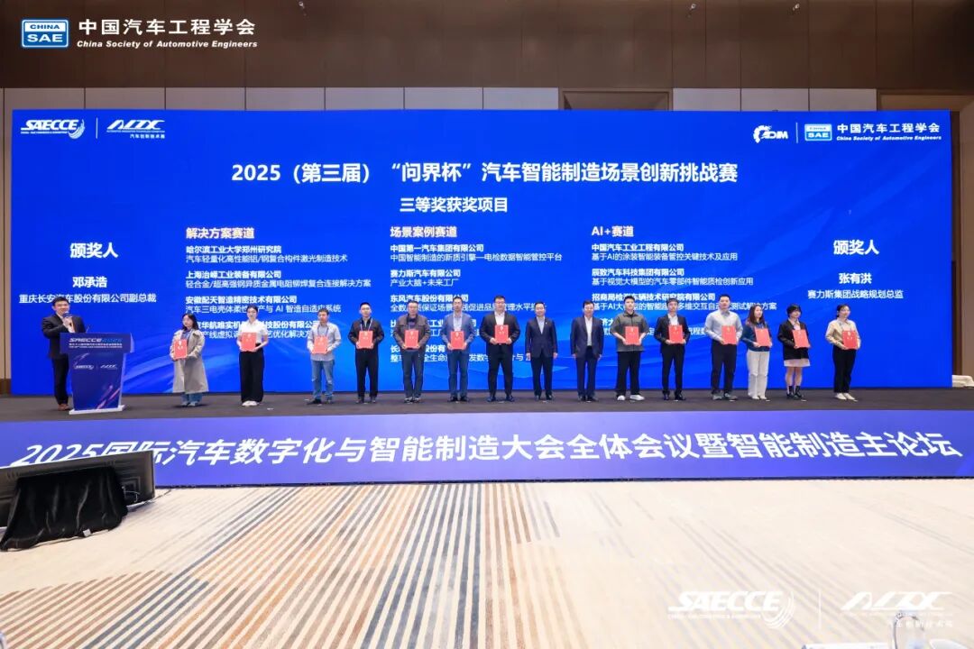 在2025中国汽车工程学会科学技术奖励大会暨高等级奖项技术分享会上,公司科技质量部副部长吴超博士被授予中国汽车工程学会青年科技奖;新能源环保事业部陈斌博士参与的《车-电协同的电池系统全温域一体化热管理关键技术及其应用》项目获评学会科技进步奖二等奖;研发中心樊莉昌博士牵头的《基于AI大模型的智能座舱多维交互自动化测试解决方案》项目,在2025国际汽车数字化与智能制造大会全体会议暨智能制造主论坛上,获评2025(第三届)“问界杯”汽车智能制造场景创新挑战赛三等奖。
