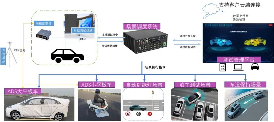 在交通部认定的自动驾驶封闭场地测试基地内,招商车研通过云端平台智能化控制多目标物与ADS移动平板车,构建了可模拟复杂交通流、实现多参与者动态交互的场地测试能力,安全高效地完成高风险场景实景复现。