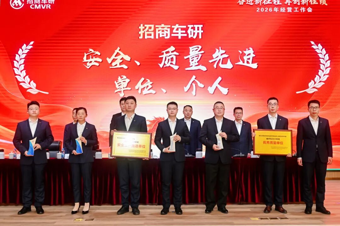 会议期间,还隆重举行了先进表彰仪式,对2025年在公司经营生产、科技创新、战略布局、能力与品牌建设、安全质量等领域作出卓越贡献的先进集体与个人予以表彰。招商检测领导及招商车研领导班子成员为获奖者及获奖代表颁奖,以先进典型为标杆,激励全体员工见贤思齐、奋勇争先,凝聚起奋进“十五五”、再创新佳绩的强大合力。
